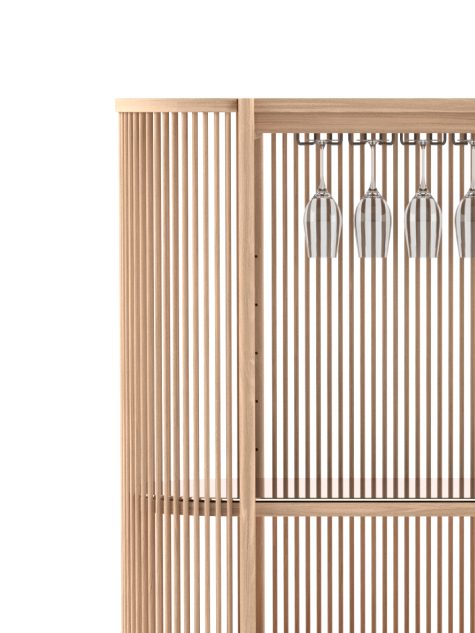 The partly open, partly covered exterior of the Bastone is a perfect match for a collection of fine spirits and glassware. It features meticulously designed interior spotlights, glass rack and a mirrored shelf that bring not just elegance but also practicality and convenience to the moments of savouring drinks. The Bastone Cabinet takes its name from the Italian word ‘Bastone’, meaning a wooden stick that refers to the wooden dowel rods that are integral to the cabinet’s structure.