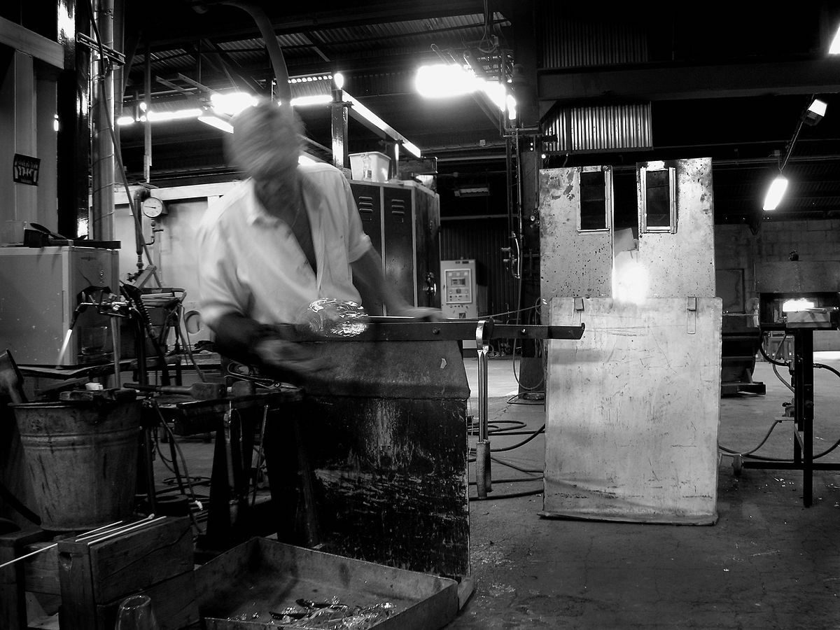 The inception of the glassblower’s pipe traces back around 2000 years to Syria, persisting as the delicate instrument through which the glassblower breathes life into molten glass, a tradition upheld at Reijmyre Glassworks. The glowing glass mass is caught from the glass oven and slowly inflated while spinning the barrel. The glass mass is then formed into almost unbelievably beautiful shapes and objects.
