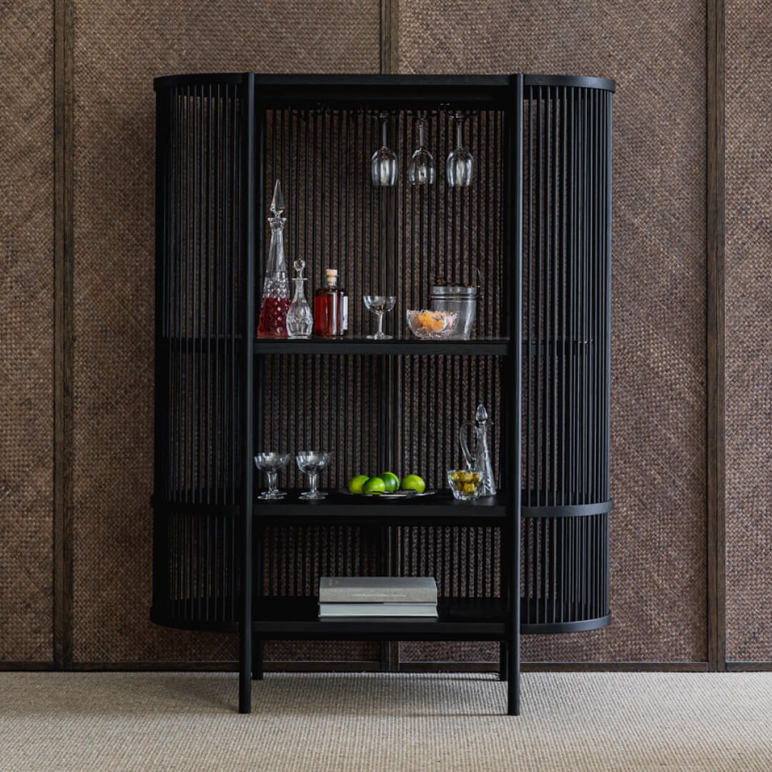 We have noticed that the Bastone collection has inspired interior designers to use Bastone furniture for various purposes. It has been delightful to hear about the different reasons customers acquire the Bastone cabinet, whether it’s for a ceramic collection, plants, or the most beautiful objects in their homes. On several occasions, designers have specified Bastone as a bar cabinet, and this enthusiasm led us to add some key elements for a bar cabinet, such as a glass rack, a mirrored surface, and lights.